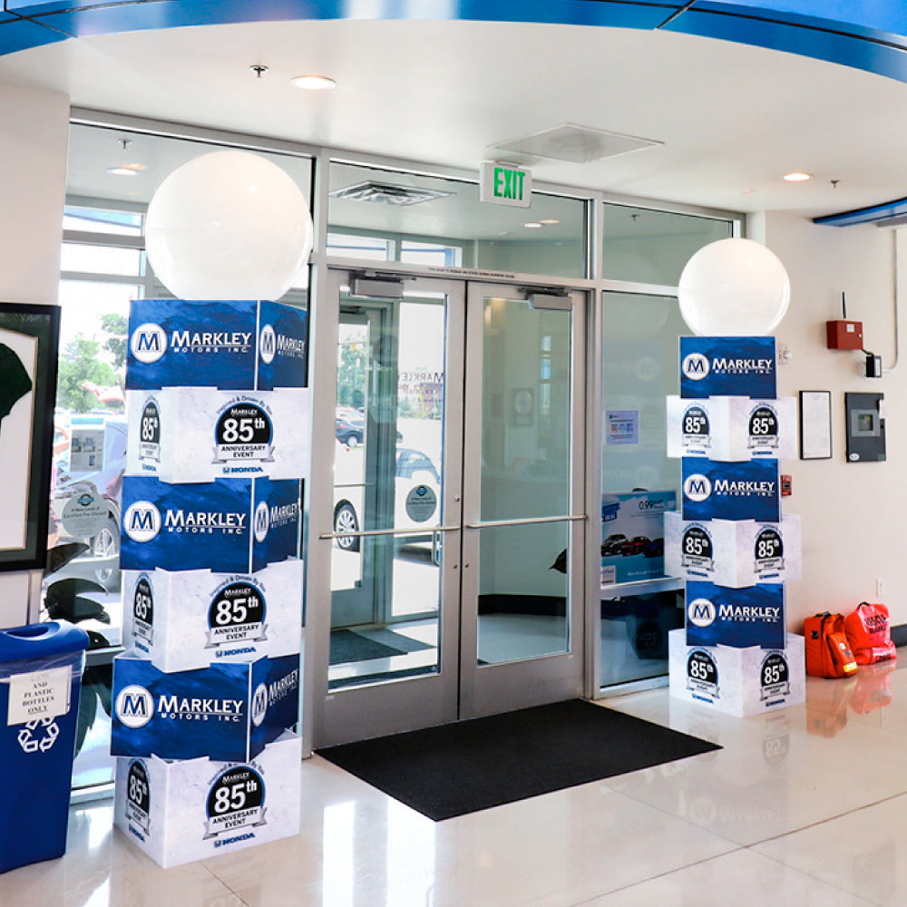 If you’re a car dealership looking for a permanent display for your showroom floor, a tower kit is a perfect way to bring some color and dimension to your space. With options for 9-foot and 7-foot tower kits, you can customize the colors for an indoor balloon display that speaks to you and your clientele.